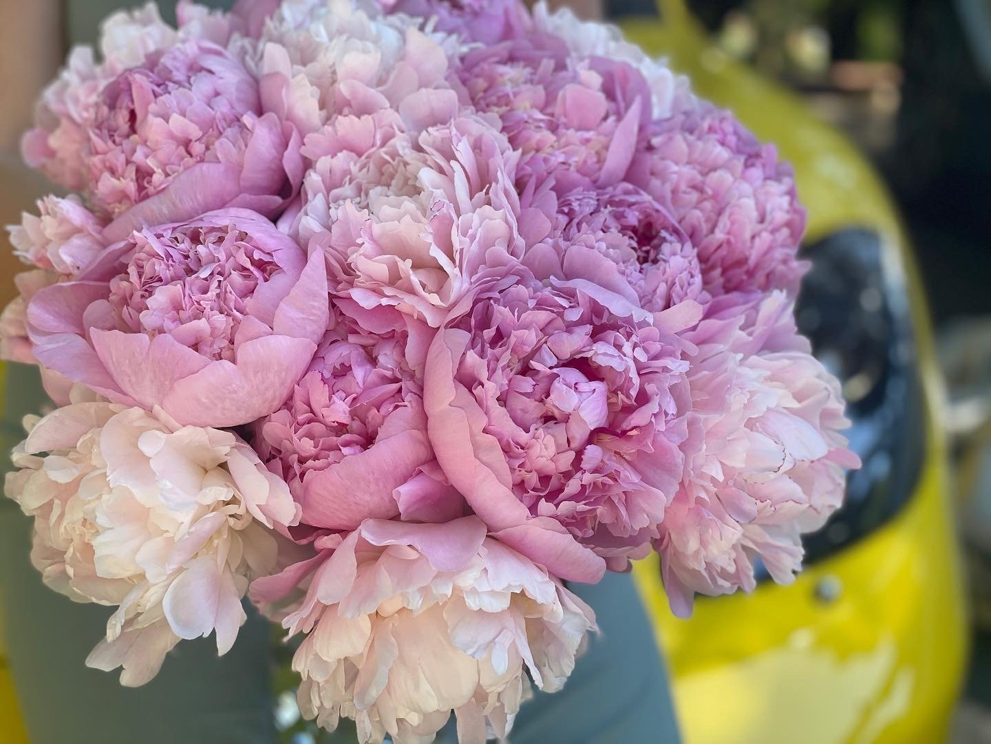 Cheers it’s Peony season! A time we all wait for is here. So order while you can. This gorgeous all peony design in a glass vase. These come in many color variations and available varieties vary daily. We suggest you request your 2 top color options and will match as best we can. This way If the color you ordered isn’t available. We can come as close as possible. These gorgeous flowers start out as tight buds and continue to open fuller every day. Of the peonies yellow tree peonies are most fragrant. The tree peonies may be in higher demand so please know we will do our best to obtain these if they are your choice. The pink hues are more accessible. We appreciate your passion for these fabulous blooms.